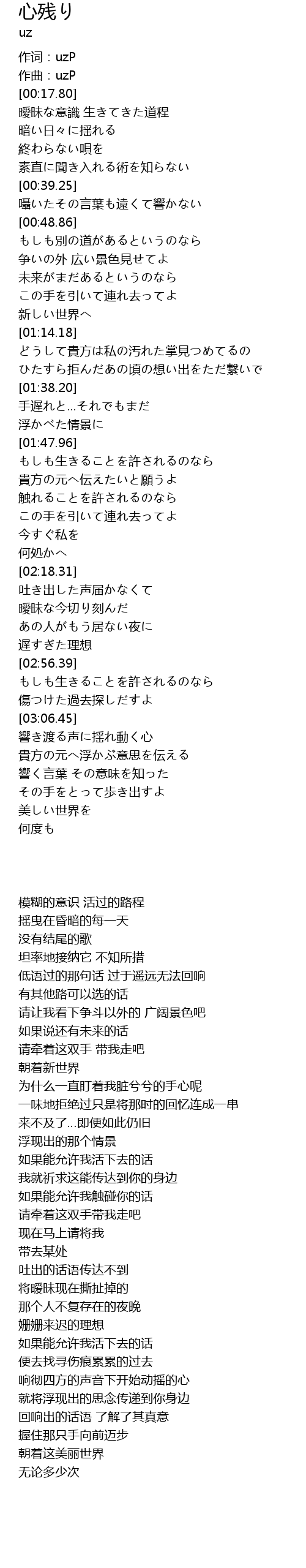 | [00:15.33] | 作曲:uzP |