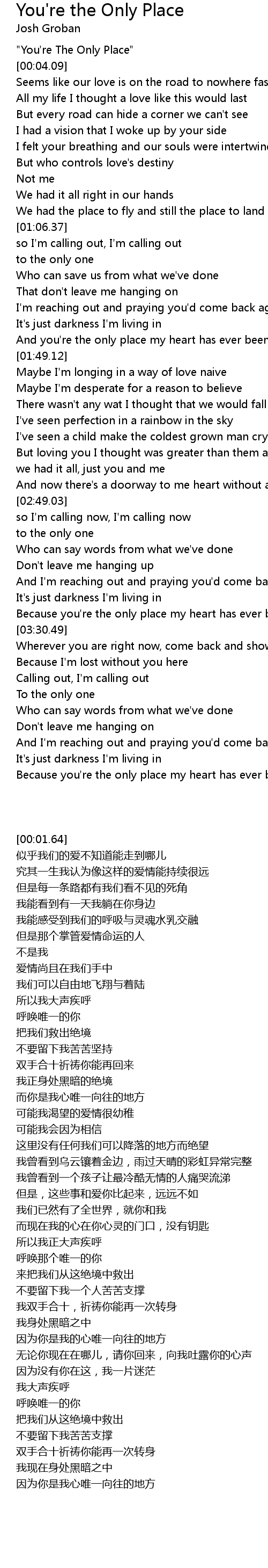 "You're The Only Place" |