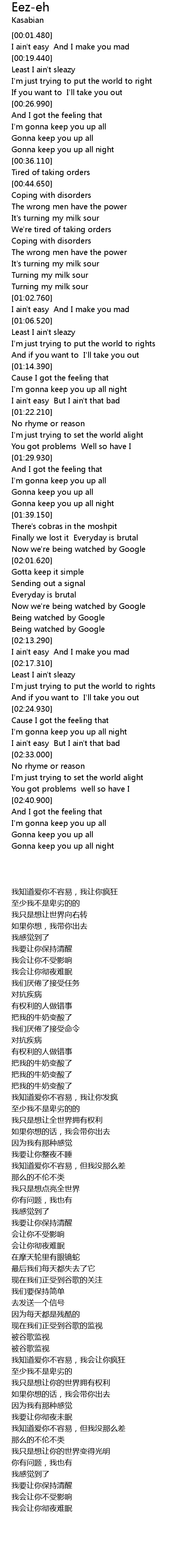| [02:30.270] | I ain't easy But I ain't that bad |