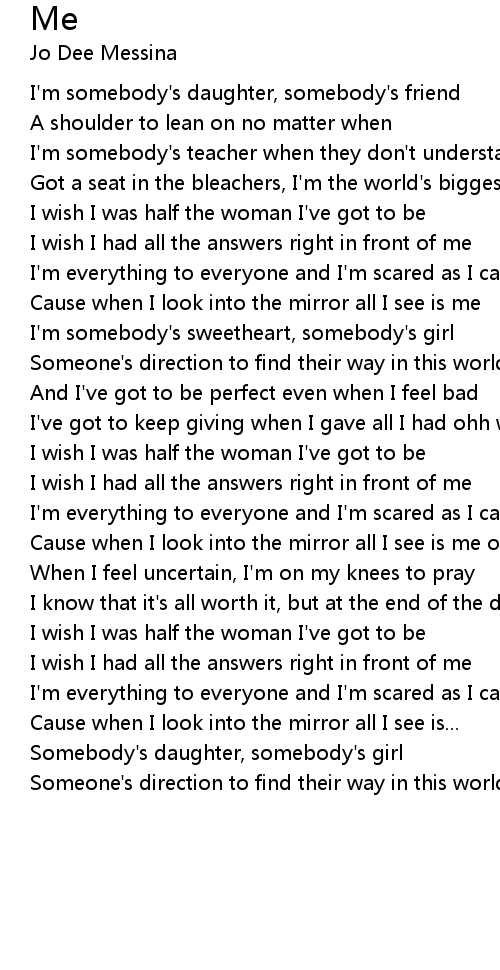 Cause when I look into the mirror all I see is me ohhh |