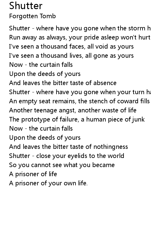 Shutter - where have you gone when your turn has come? |