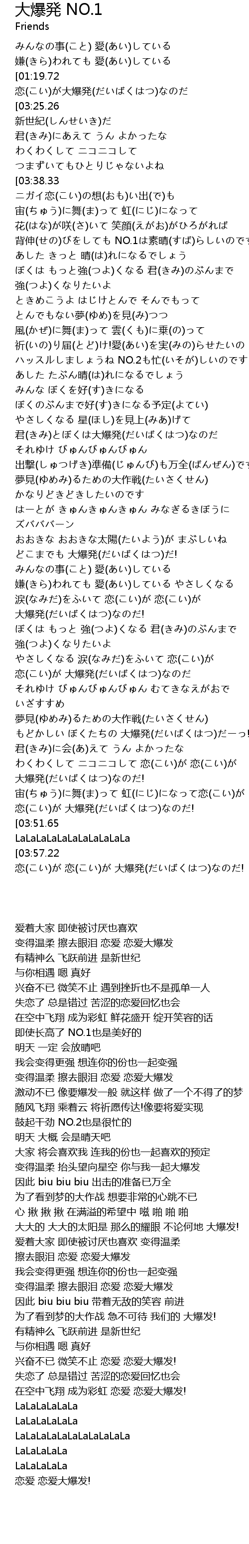 | [03:58.67] | 恋(こい)が 恋(こい)が 大爆発(だいばくはつ)なのだ! |