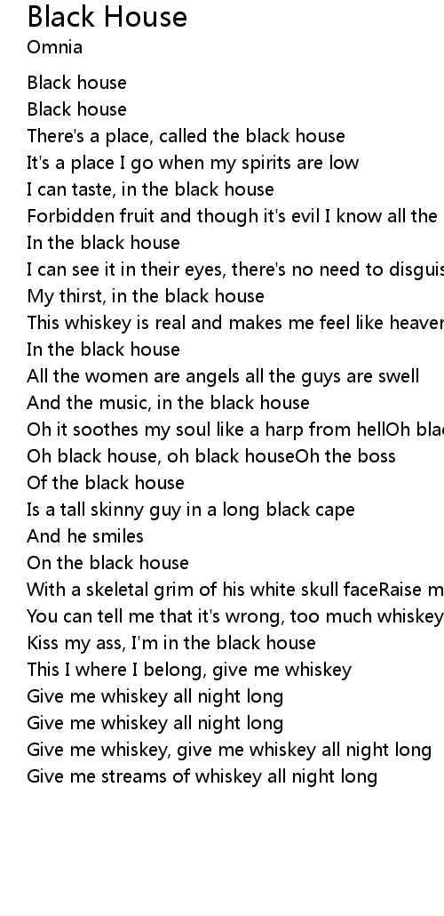 Oh it soothes my soul like a harp from hellOh black house |
