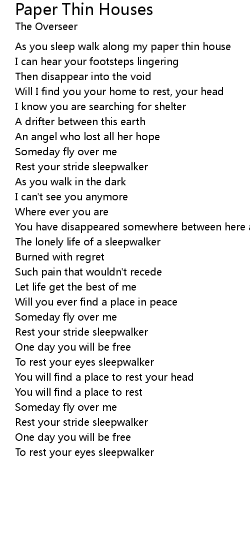 As you sleep walk along my paper thin house |