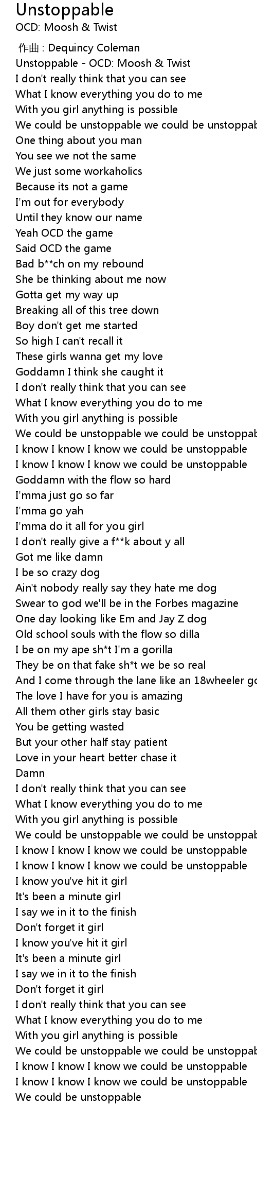 | [00:00.204] | Unstoppable - OCD: Moosh & Twist |