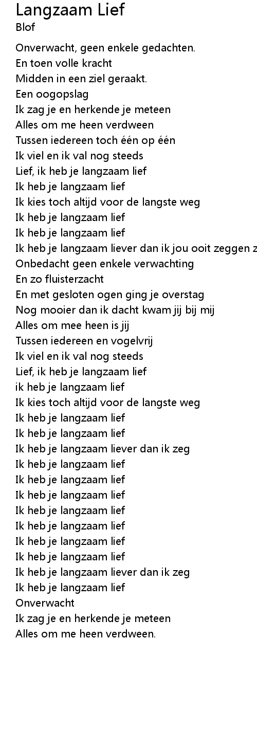| Ik heb je langzaam liever dan ik jou ooit zeggen zal | |