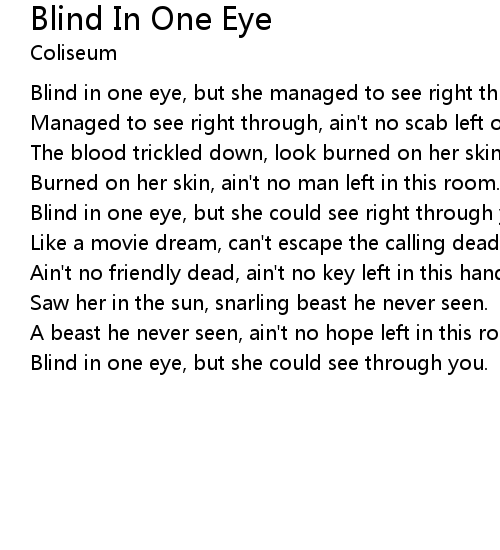 Blind in one eye, but she could see right through you. |