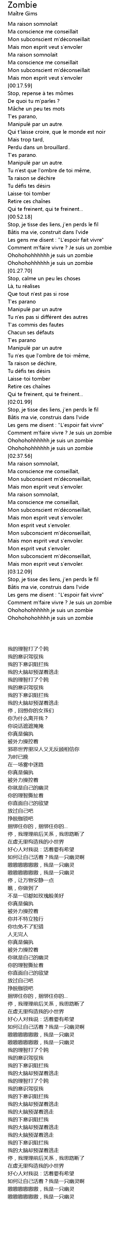 | [02:16.52] | Comment m' faire vivre ? Je suis un zombie |