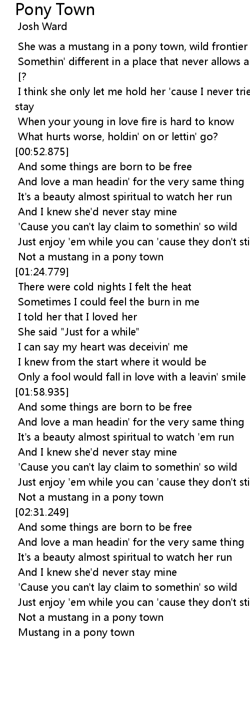 | [00:15.325] | She was a mustang in a pony town, wild frontier on settled ground |
