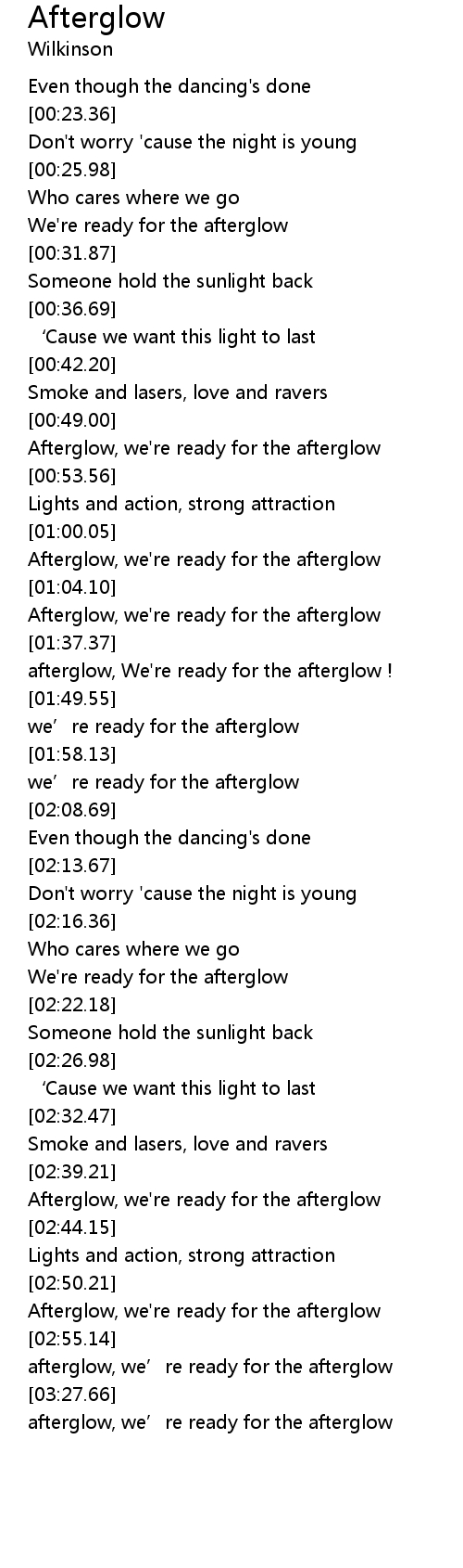 | [03:35.38] | afterglow, we' re ready for the afterglow |