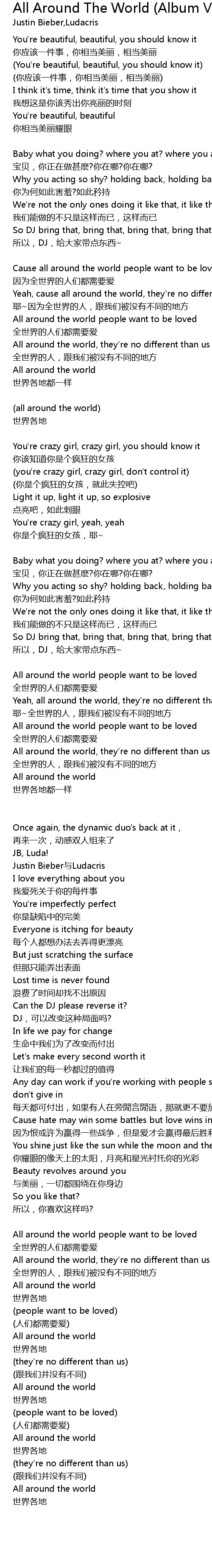 | Cause all around the world people want to be loved | |