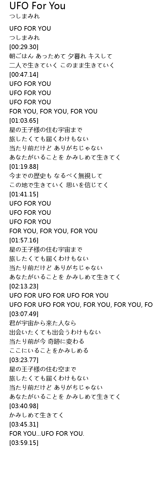 | [02:58.35] | UFO FOR UFO FOR YOU, FOR YOU, FOR YOU, FOR YOU |