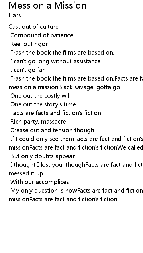 | My only question is howFacts are fact and fiction's fictionA mess on a missionFacts are fact and fiction's fiction |
