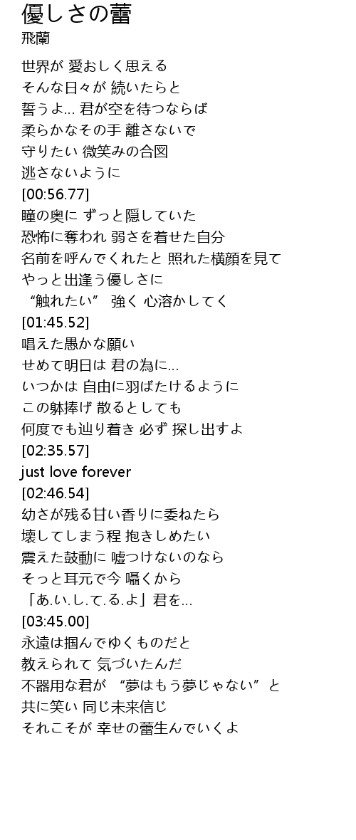 | [03:08.63] | 壊してしまう程 抱きしめたい |