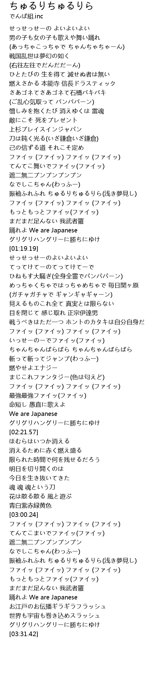 | [03:18.10] | 踊れよ We are Japanese |