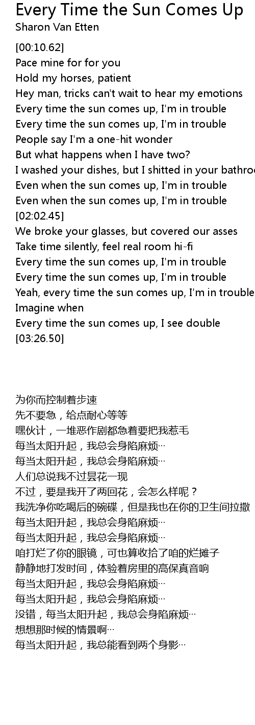 Every time the sun comes up, I'm in trouble |