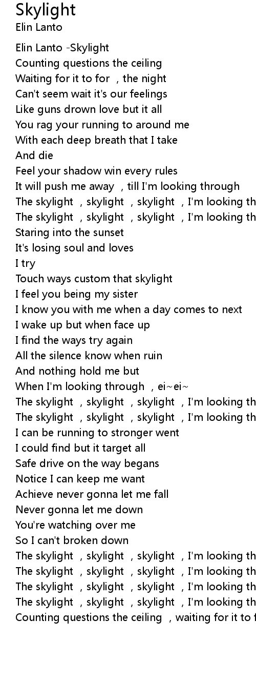 | [02:47.212] | The skylight , skylight , skylight , I' m looking through |