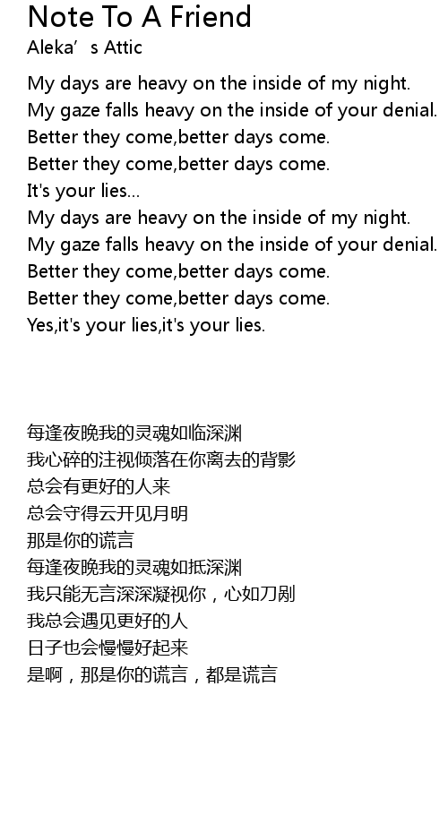 | Song | Note To A Friend |