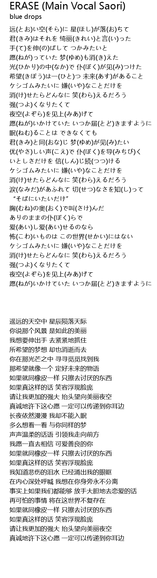 | [02:16.360] | ケシゴムみたいに 嫌(いや)なことだけを |