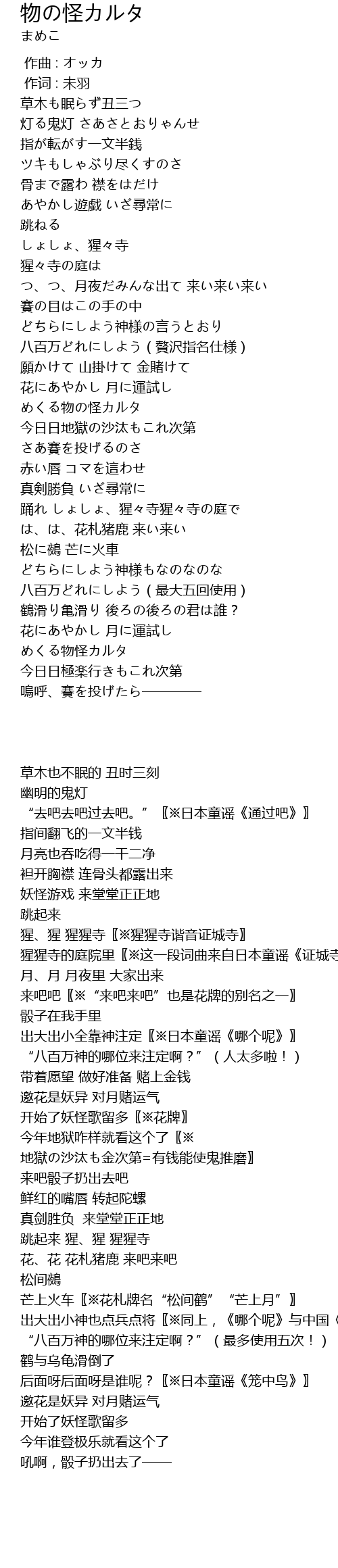 | [01:50.300] | めくる物の怪カルタ |