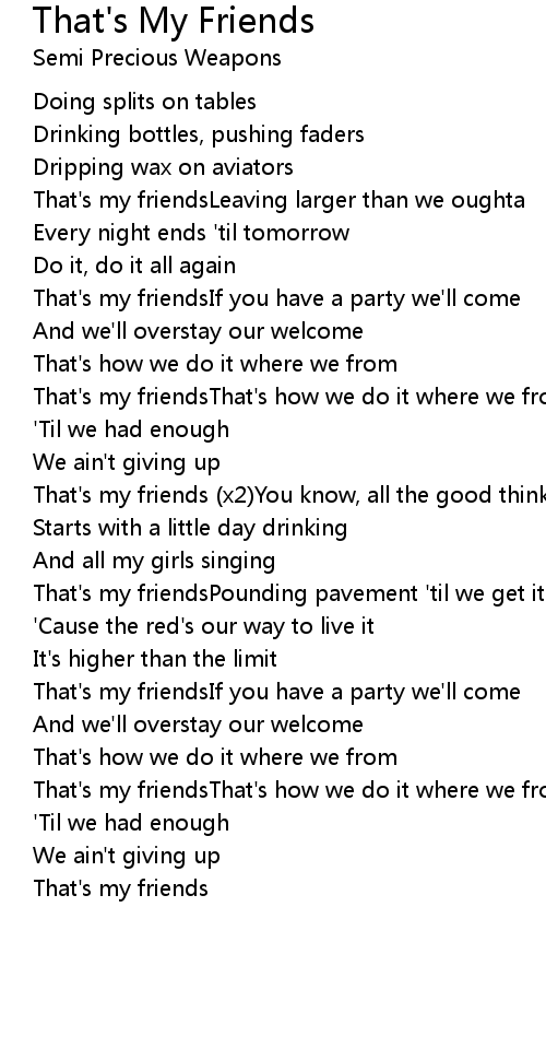 That's my friendsThat's how we do it where we from (x3)We ain't giving up |