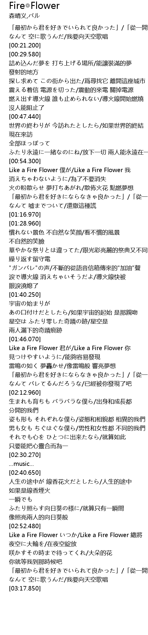 | [01:47.470] | Like a Fire Flower 君が/Like a Fire Flower 你 |