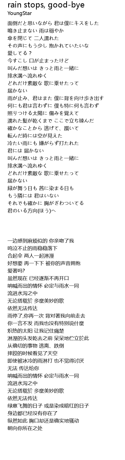 | Song | rain stops, good-bye |