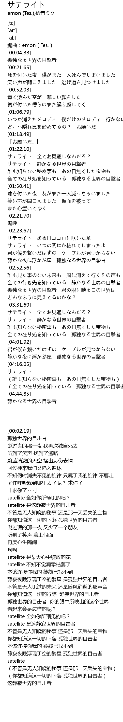 | [03:40.75] | サテライト 静かなる世界の目撃者 |