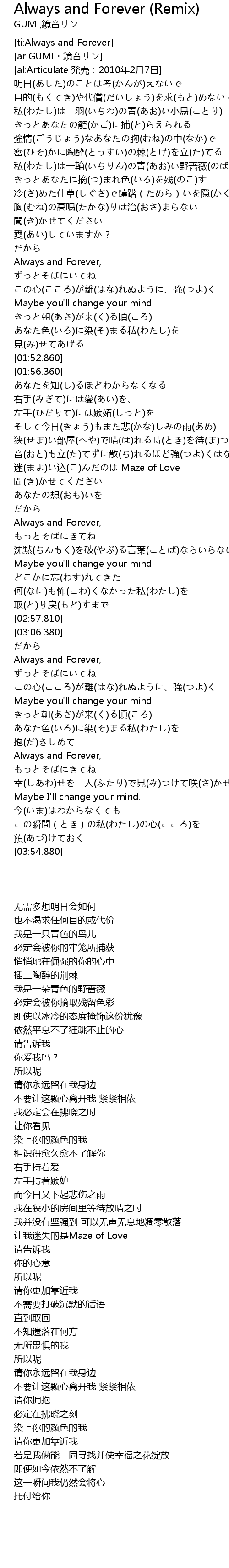 | [02:42.330] | 沈黙(ちんもく)を破(やぶ)る言葉(ことば)ならいらない |