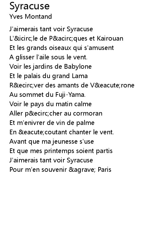 J'aimerais tant voir Syracuse |