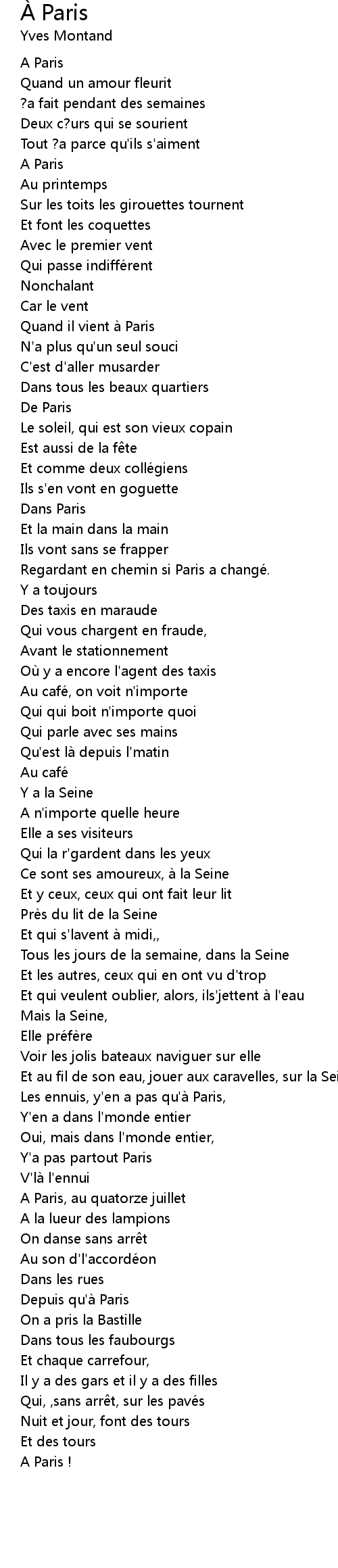 | Song | À Paris |