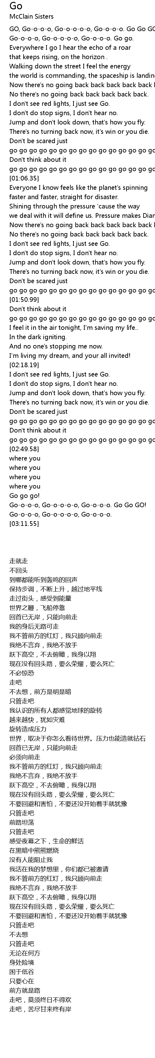 Go-o-o-o, Go-o-o-o-o, Go-o-o-o. Go go. |