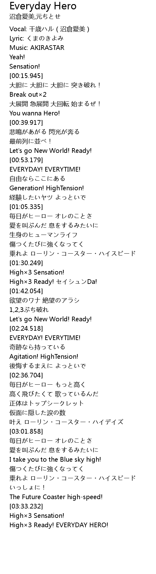 | [03:42.418] | High×3 Ready! EVERYDAY HERO! |