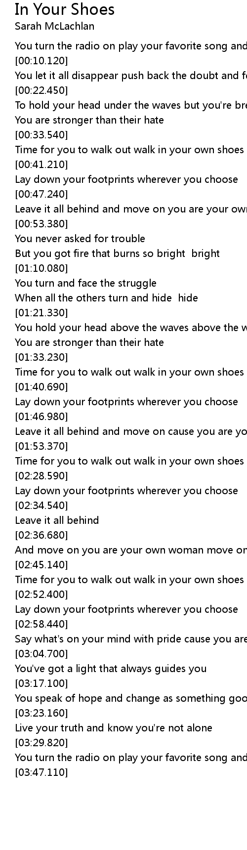 Time for you to walk out walk in your own shoes |
