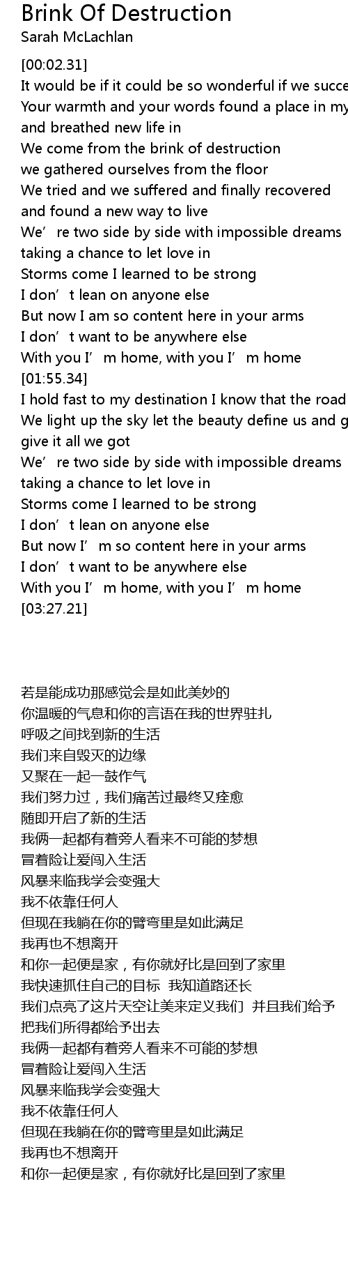 | [00:39.49] | We come from the brink of destruction |