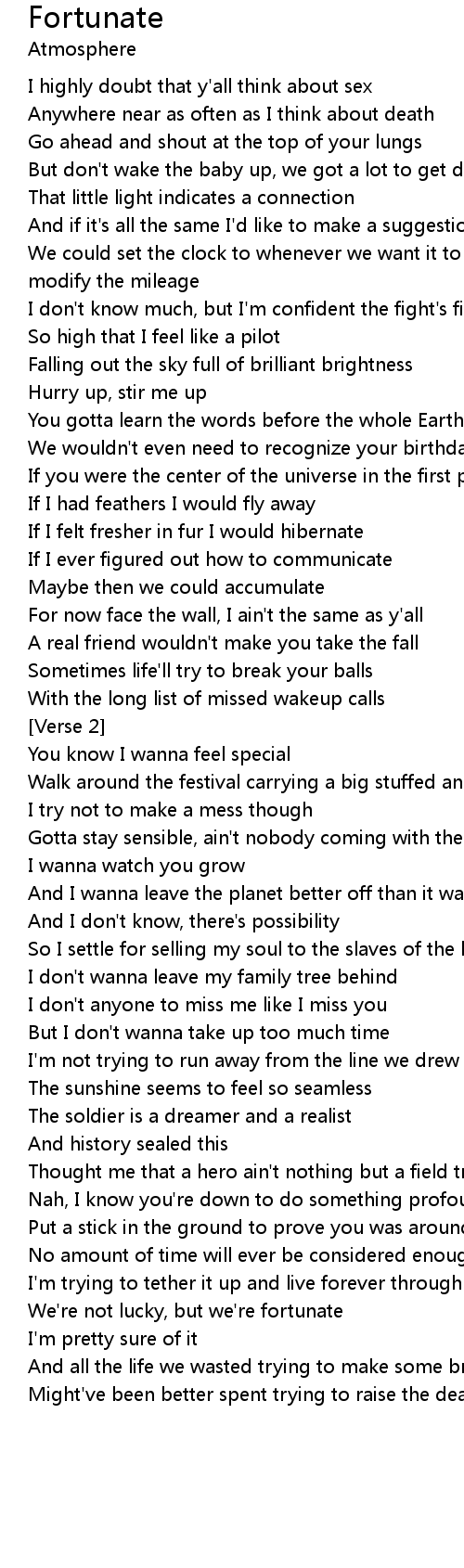 We're not lucky, but we're fortunate |