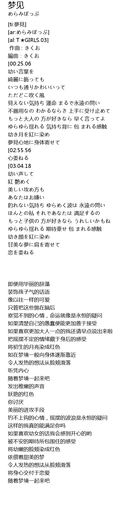 | [01:23.50][03:04.18] | さあ夢のまにまに |