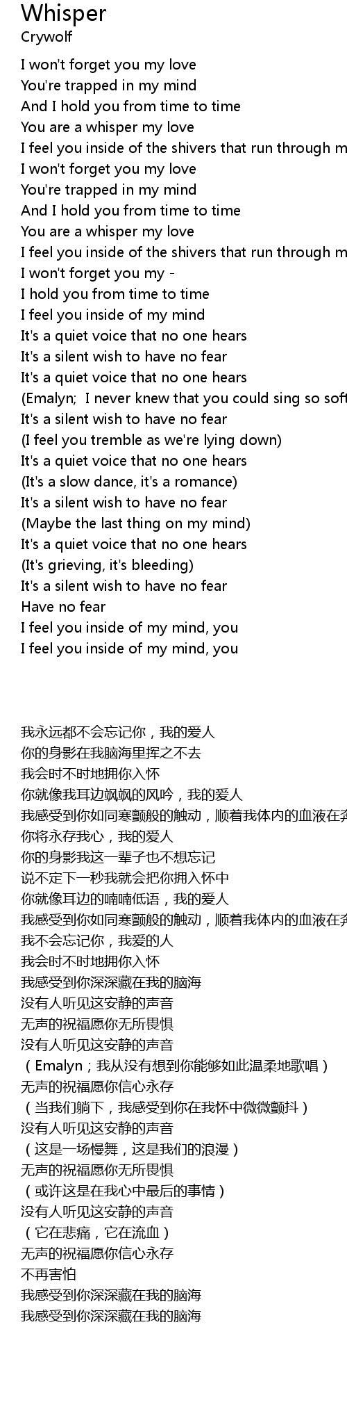 | [00:33.61] | You are a whisper my love |