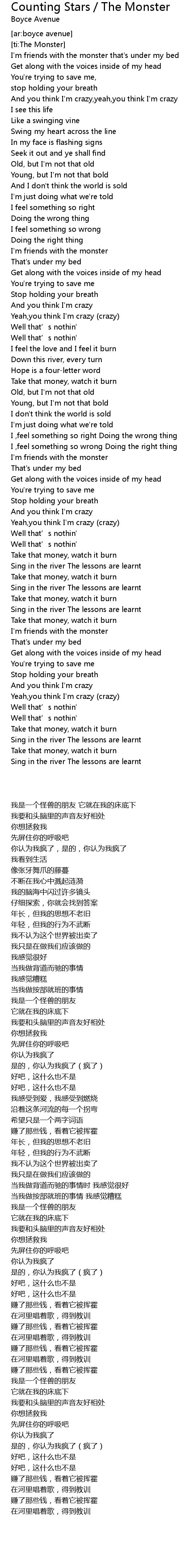 | Song | Counting Stars / The Monster |