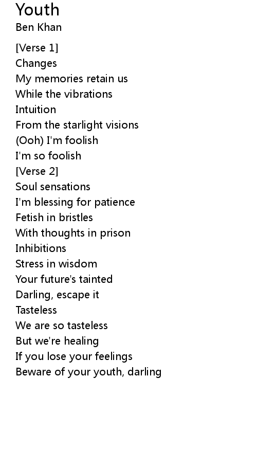 | Beware of your youth, darling |