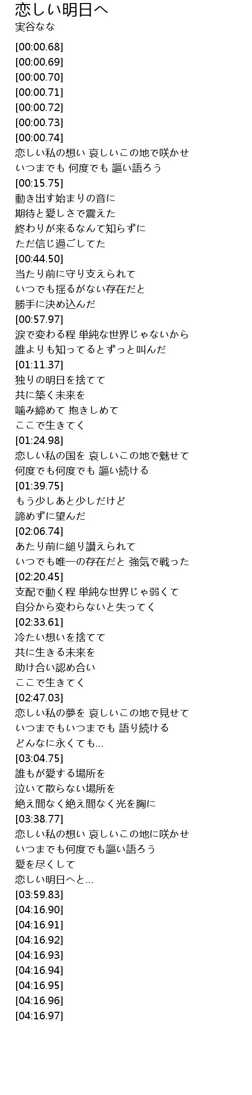 | [03:55.75] | 恋しい明日へと… |