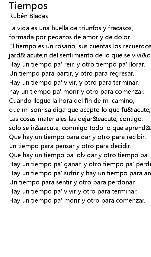 Que hay un tiempo pa' olvidar y otro tiempo pa' entender. |