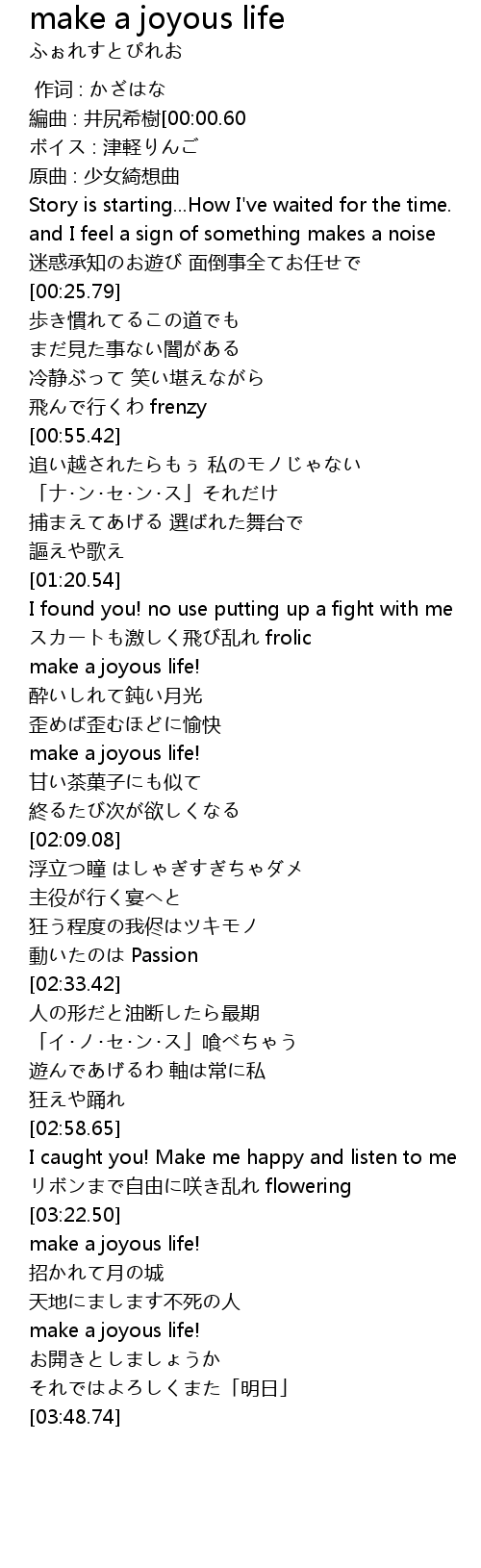 | [03:16.69] | リボンまで自由に咲き乱れ flowering |