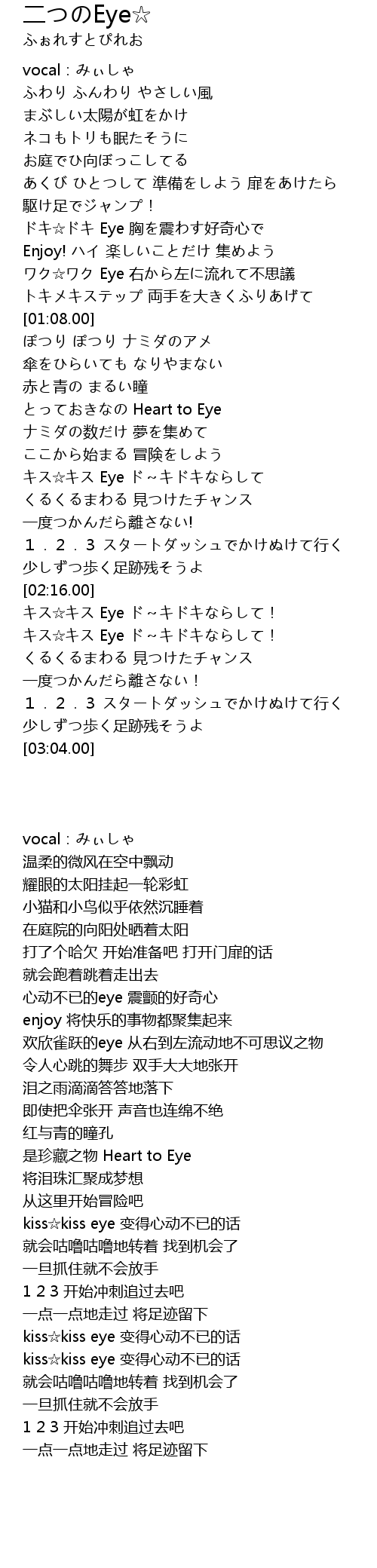 | [02:39.00] | キス☆キス Eye ド~キドキならして! |