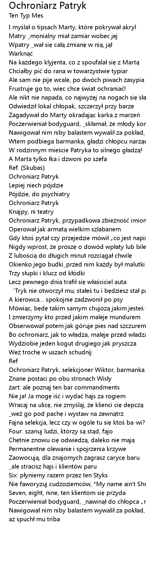 | Song | Ochroniarz Patryk |