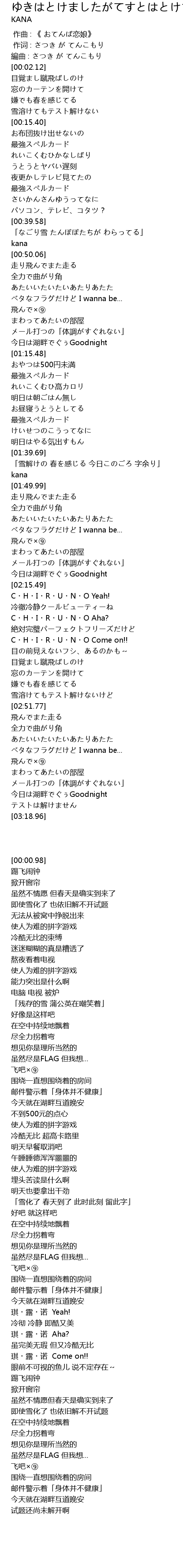 | [01:40.41] | 「雪解けの 春を感じる 今日このごろ 字余り」 |