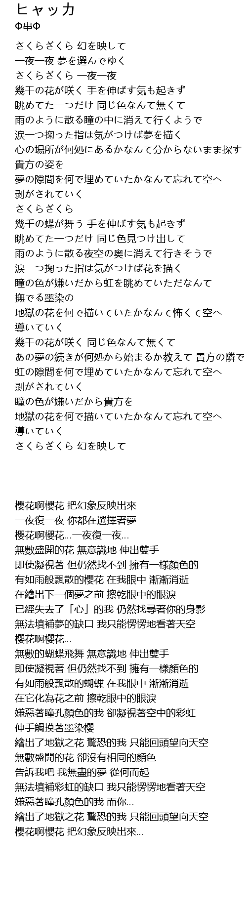 | [04:50.41] | 地獄の花を何で描いていたかなんて忘れて空へ 導いていく |