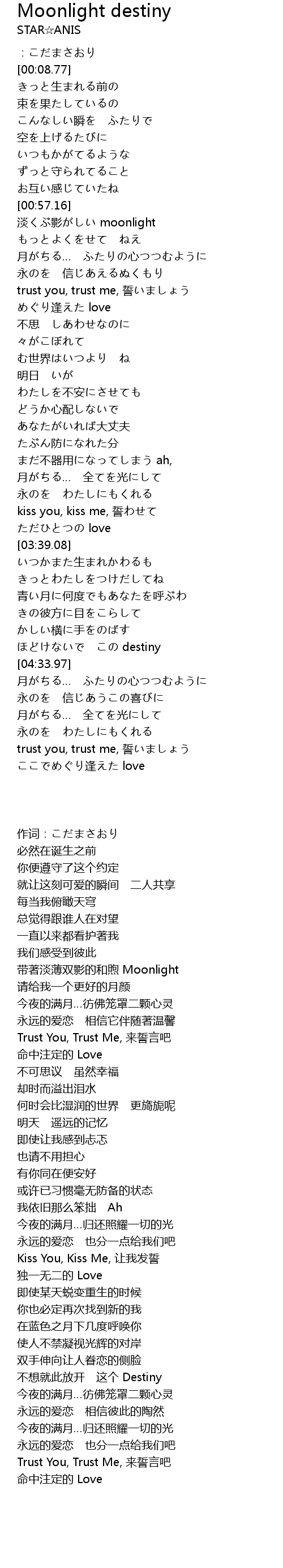 | [04:23.84] | ほどけないで この destiny |