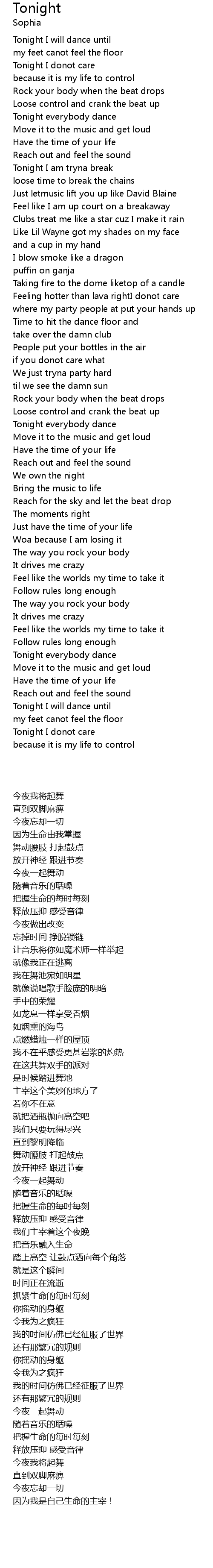 Tonight I will dance until |