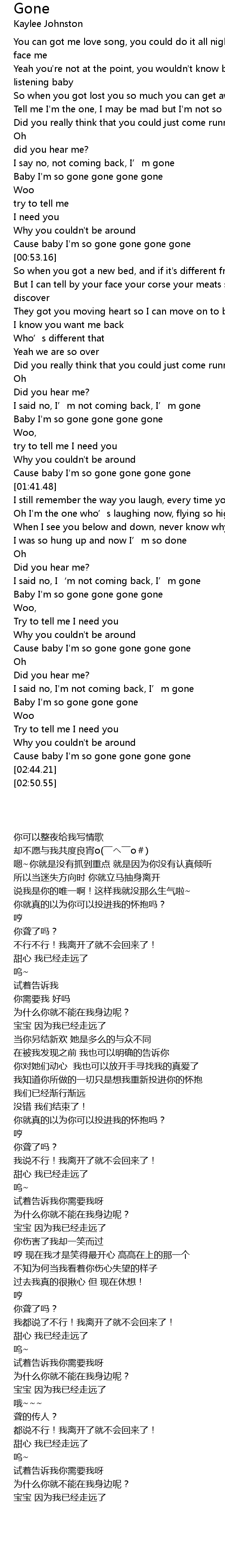 | [00:49.81] | Cause baby I' m so gone gone gone gone |